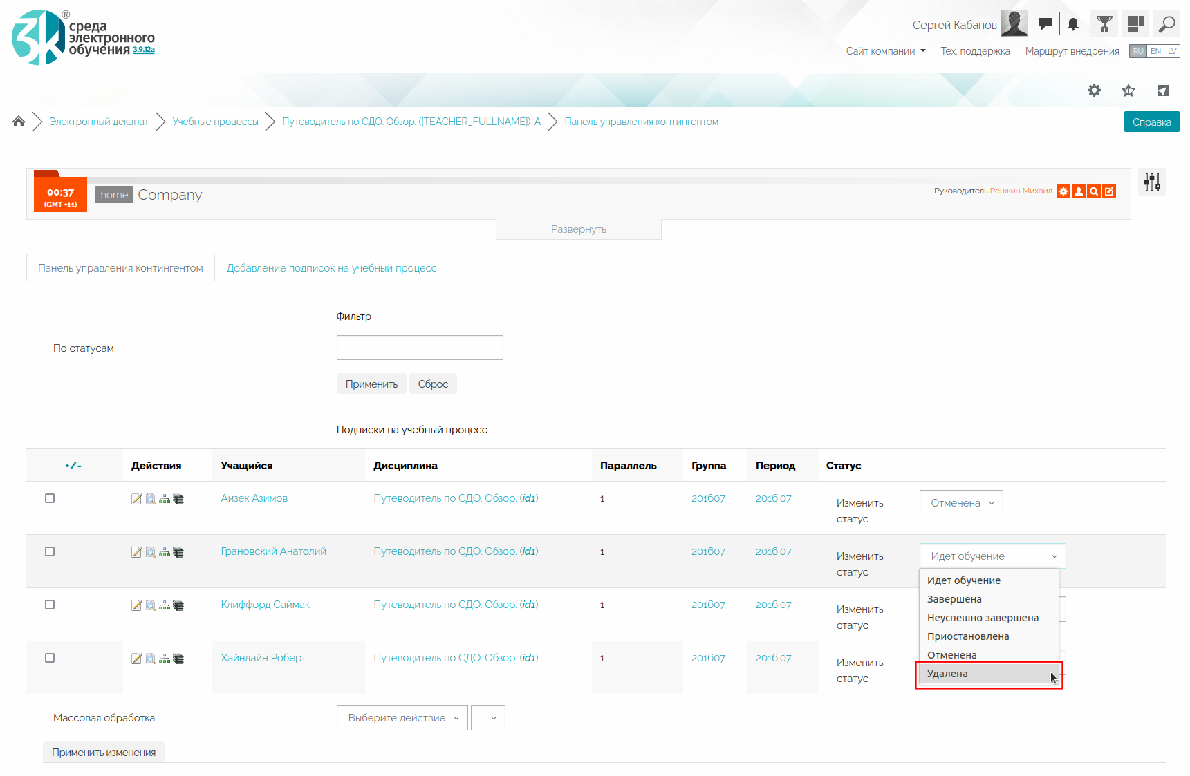 В модуле «Электронный деканат» для подписок добавлен новый статус «Удалена», который позволяет полностью скрыть ошибочно созданные подписки на учебные процессы из интерфейсов деканата.