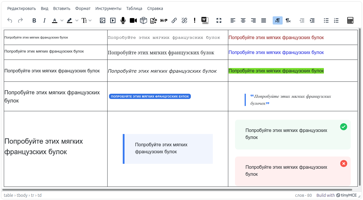 • Новые инструменты оформления текста в редакторе «TinyMCE».