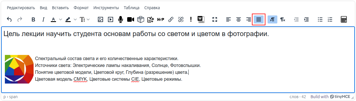 • Цвет текста редактора TinyMCE - настройка цвета текста;