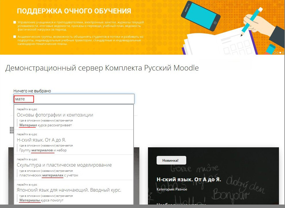 Улучшена функция поиска в Витрине курсов с помощью индексации мета-данных о курсе.